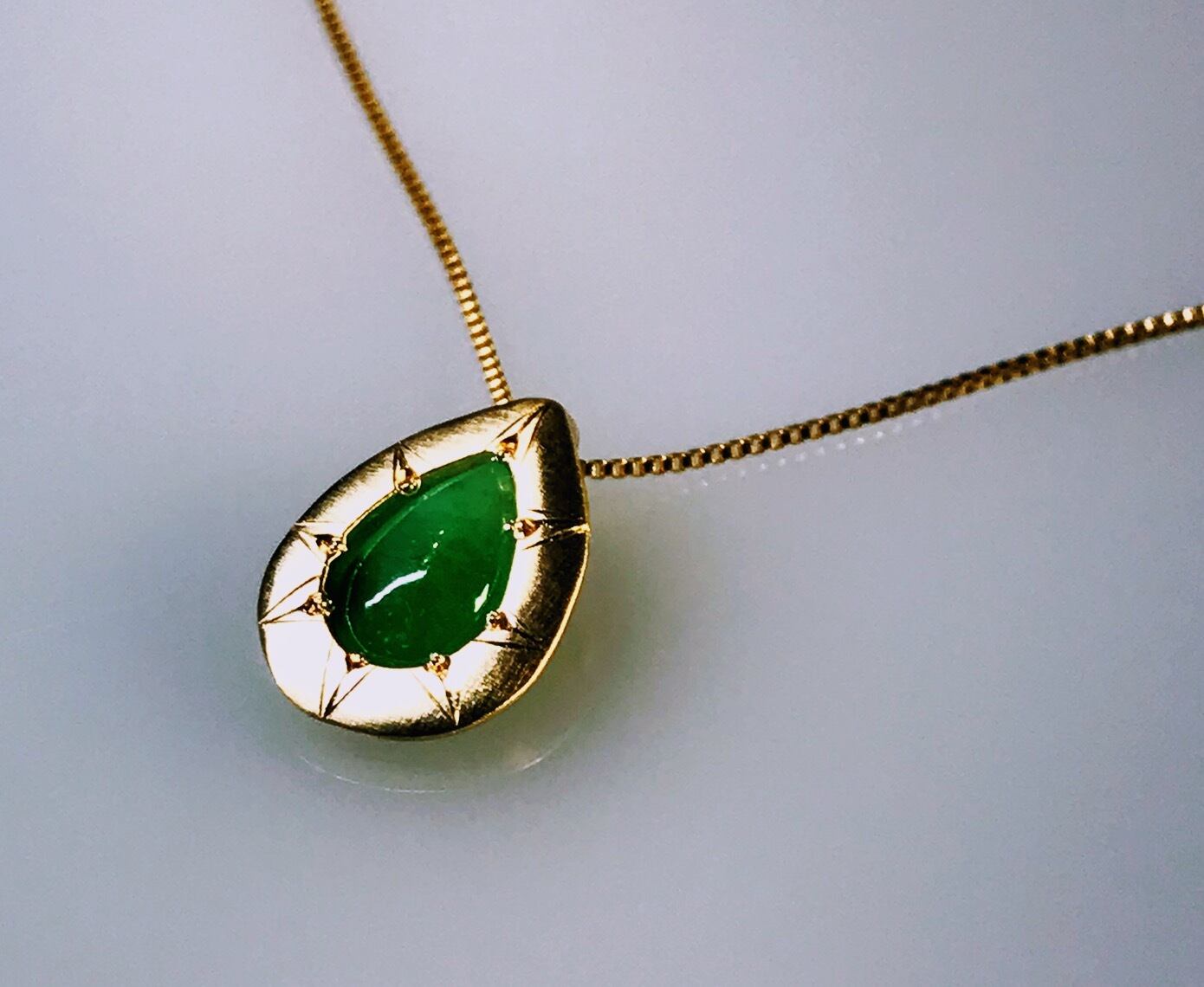 ペンダント部分には繊細な細さの毛彫りを入れております。こちらも手彫りならではの、キラキラ輝く彫りをお楽しみ頂けます。